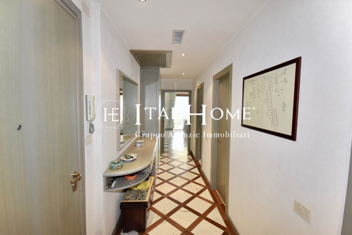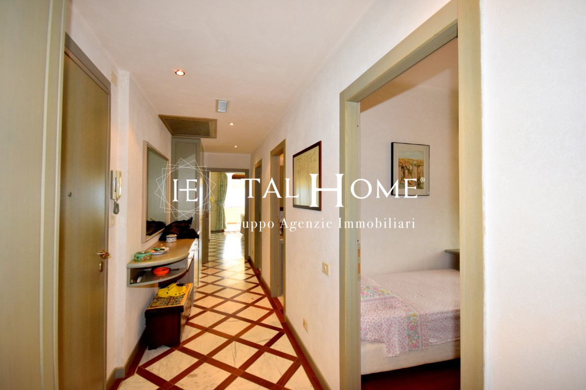 Vendesi vero Attico, già arredato con mobilio di pregio disegnato da un Noto Architetto, ultimo piano, servito da ascensore, doppia esposizione, vista panoramicissima, terrazza attrezzata con possibilità di essere usata anche tutto l'anno, doppi servizi, due camere da letto, grande salone e cucina separata/terza camera, oltre alle 3 balconate che abbracciano l'immobile.
